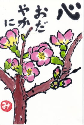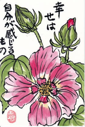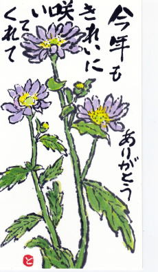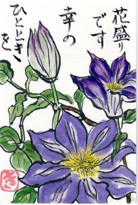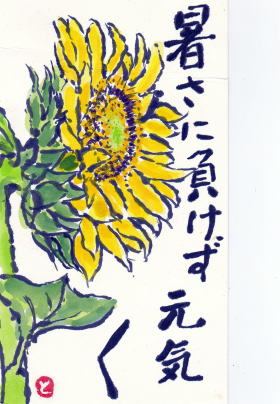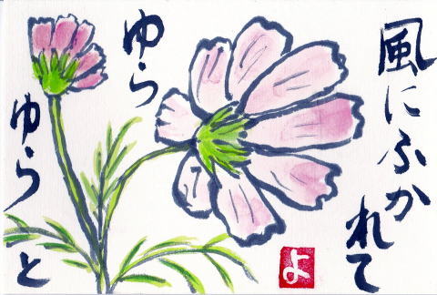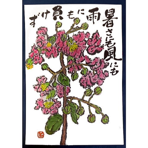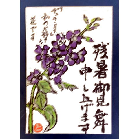| 暑中見舞い うちわ 2021/8/1 林敏子作 | 残暑見舞い チュラタンの花 2021/8/15 林敏子作 | |